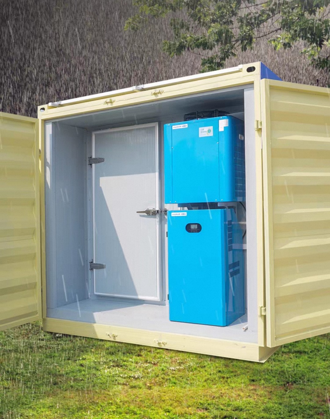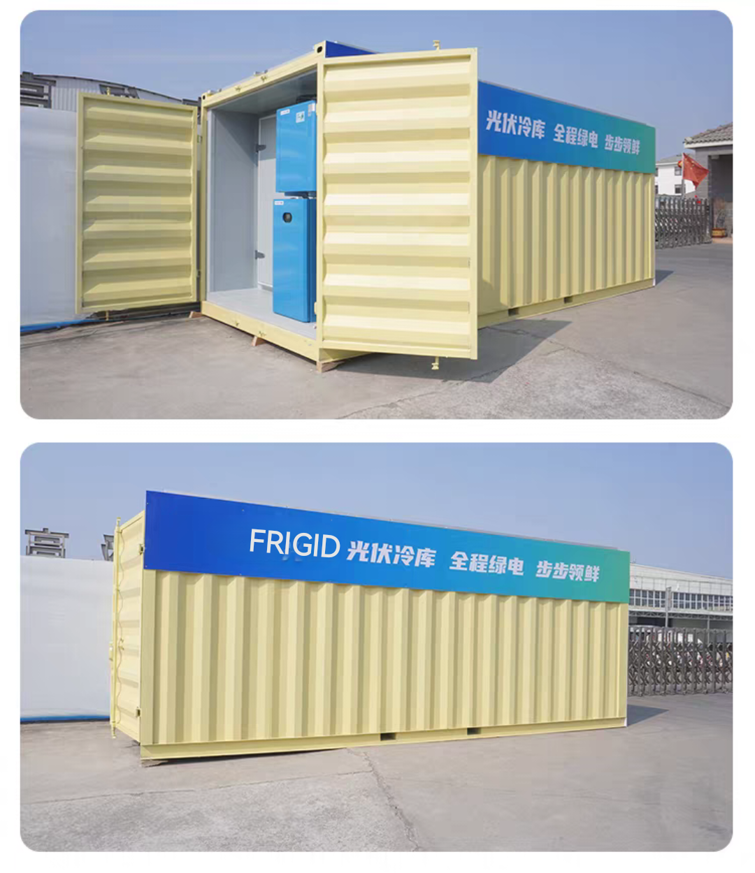 This Solar cold room size 6m*2.4m*2.4m /12*2.4*2.4m are available Temperature Adjusted Range: -+10~-20℃ Using Range: Meat storage,Fish storage,Ice storage